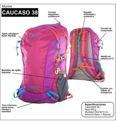 La mochila Caucaso es una mochila muy completa y tiene unas características muy completas como: