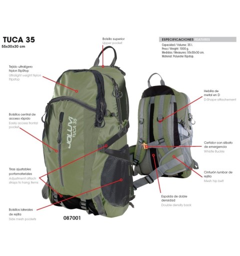 Características de Mochila Trekking Joluvi Tuca 35 Roja