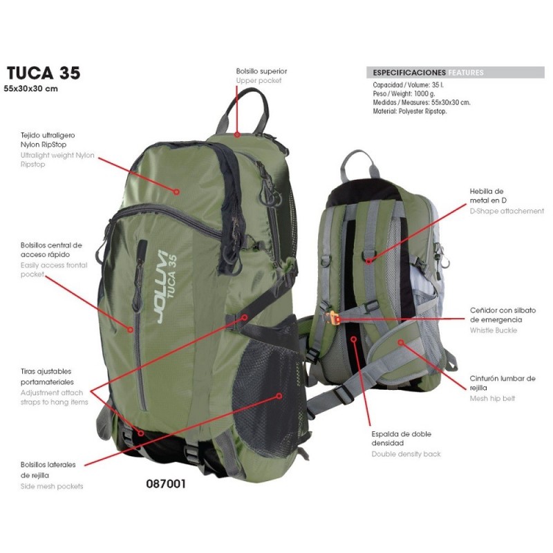 Características de Mochila Trekking Joluvi Tuca 35 Verde Lima