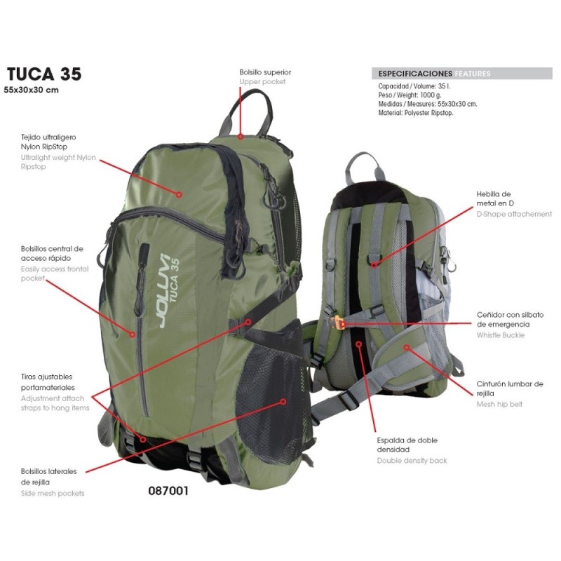 Características de Mochila Trekking Joluvi Tuca 35 Verde Militar