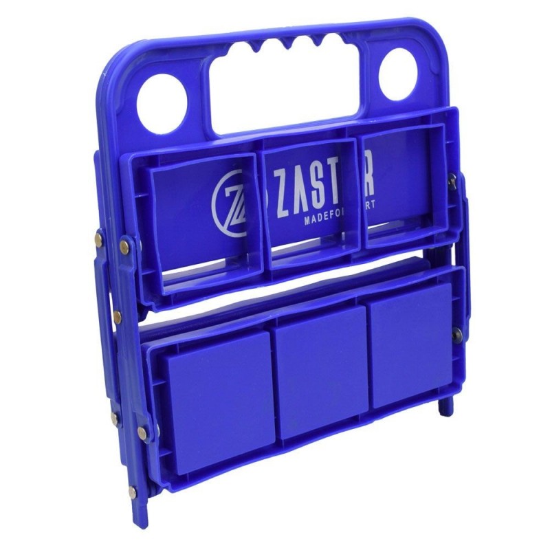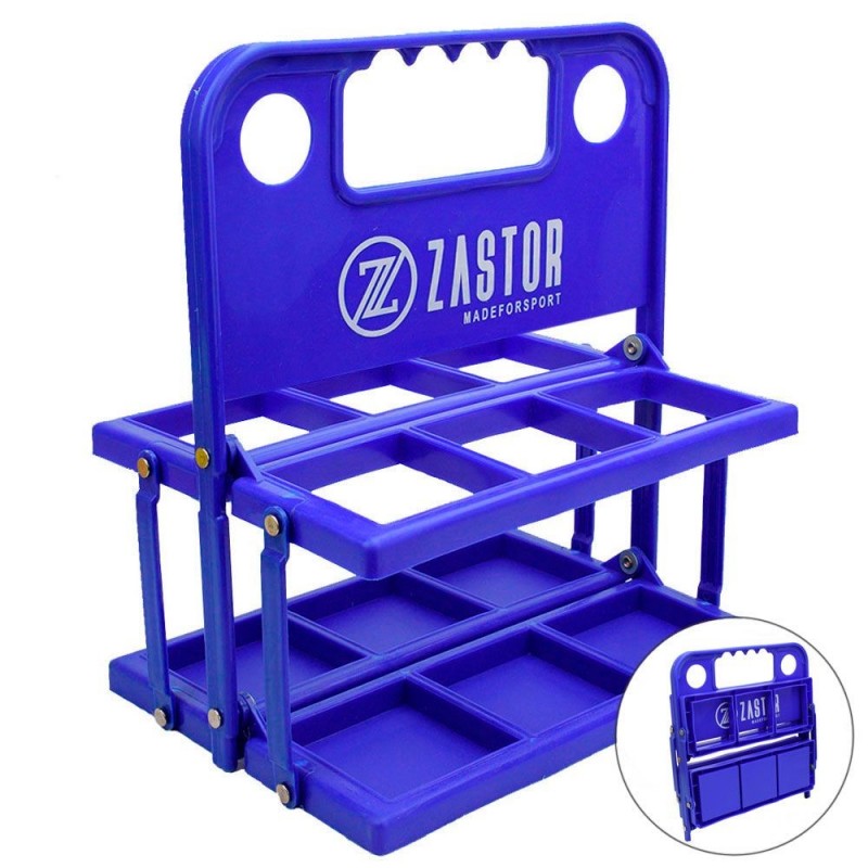 Botellero plegable de color azul con 6 botellas de 750 ml blancas con tapón PET.