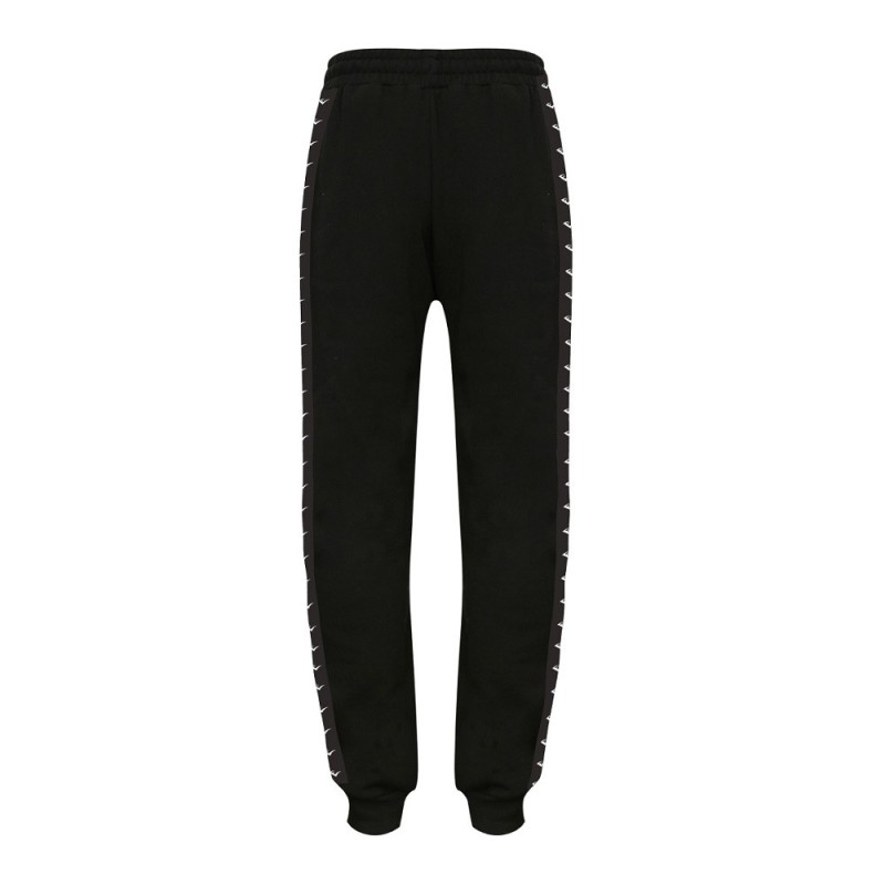 Este pantalón está diseñado en color negro y tiene una cintura elástica con cordón ajustable, que permite que puedas ajustar el pantalón según tu preferencia para lograr un ajuste cómodo y seguro en la cintura. Está confeccionado con un 60% algodón y un 40% poliéster, e incorpora una banda con el logotipo de la marca en los laterales.