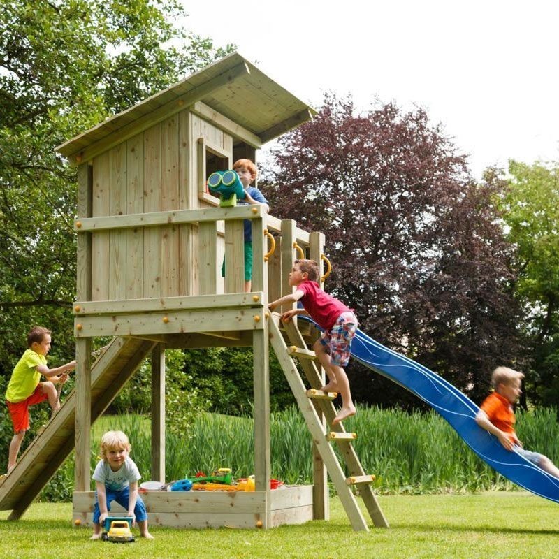 Descubre el impresionante parque infantil Torre Beach Hut, una estructura de madera ideal para el jardín de tu hogar. Diseñado para el entretenimiento de los más pequeños, cuenta con un tobogán y un arenero, ofreciendo diversas opciones de juego para garantizar horas de diversión.