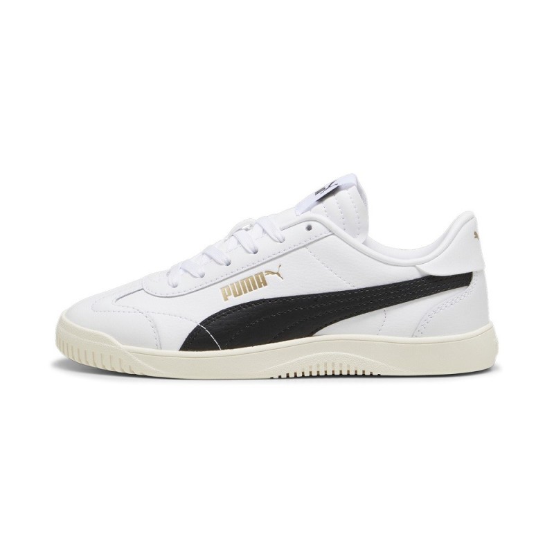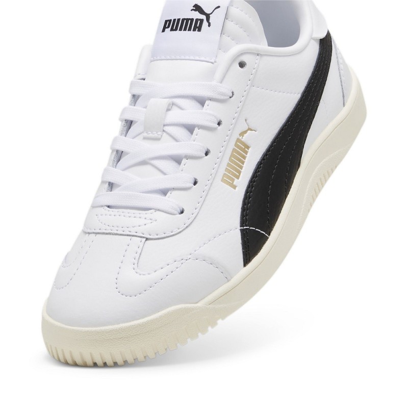 Explora las zapatillas Club 5V5 JR de Puma para niños, en blanco y negro, que capturan la esencia de la cultura de las terrazas entre los aficionados al fútbol.