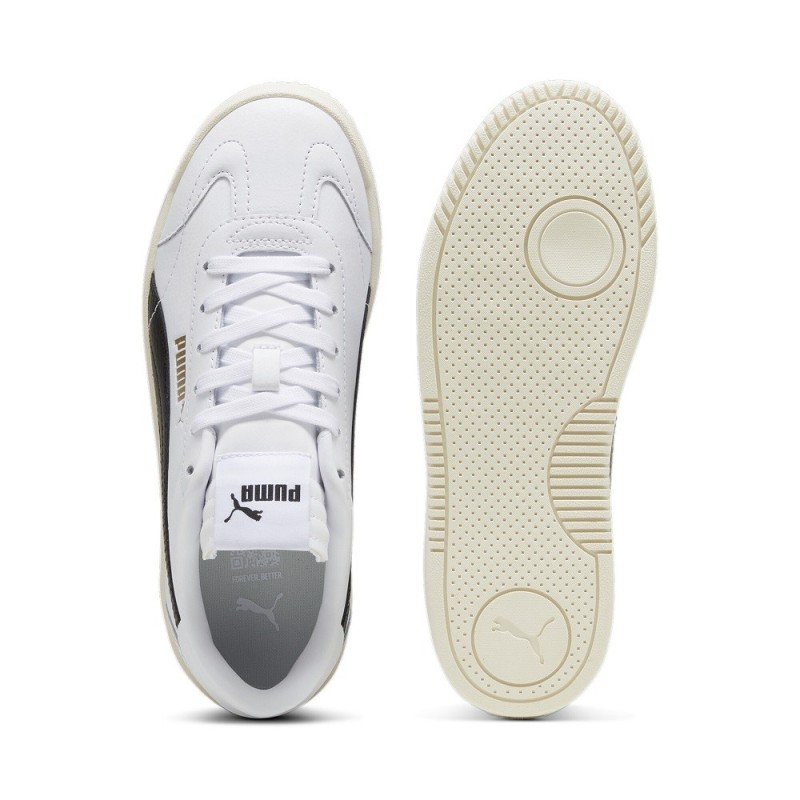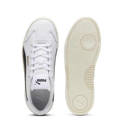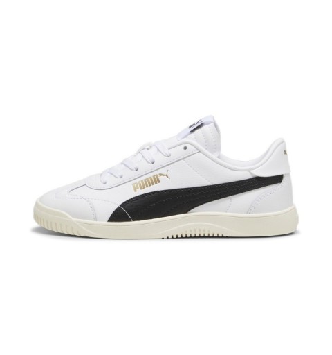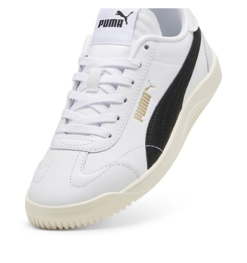 Las zapatillas casual para niños Club 5V5 JR de Puma en blanco y negro están diseñadas con una parte superior que combina cuero revestido y cuero sintético. Incluyen detalles como la puntera en forma de T y líneas de costura que modernizan el estilo futbolístico. La suela de goma ofrece durabilidad con un diseño ondulado que combina resistencia y moda, mientras que la plantilla SoftFoam+ proporciona una amortiguación superior y confort óptimo para los pequeños.