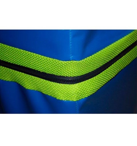 Quitamiedos tamaño 300x200cm plegable por la mitad, fabricado con lona ignífuga reforzada y de alta resistencia que permite la salida del aire. Interior relleno de espuma de poliuretano de 20kg/m³ de densidad. Incorpora cremallera para la fácil sustitucion de la cubierta de lona ignífuga.