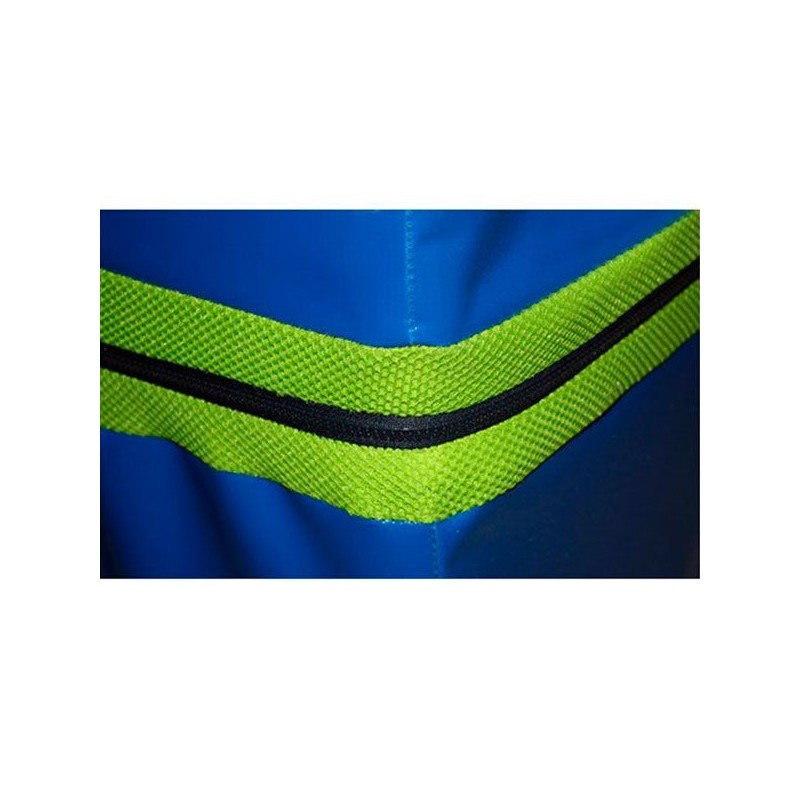 Quitamiedos tamaño 300x200cm plegable por la mitad, fabricado con lona ignífuga reforzada y de alta resistencia que permite la salida del aire. Interior relleno de espuma de poliuretano de 25kg/m³ de densidad. Incorpora cremallera para la fácil sustitucion de la cubierta de lona ignífuga.