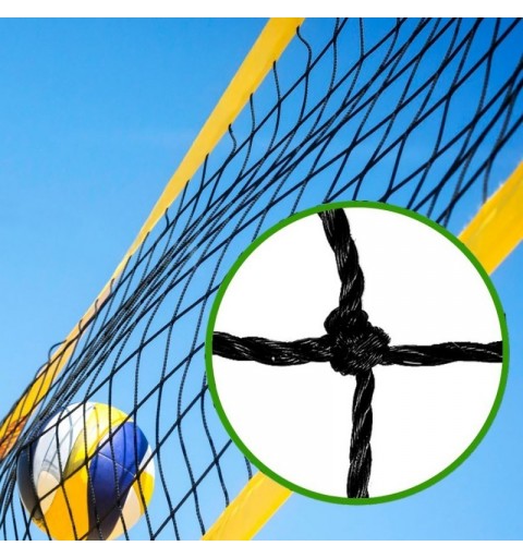 Red de vóley playa Expert está fabricada en polipropileno 3mm cableado negro de alta densidad torcido para postes de beach volley. Dispone de cinta de color amarillo en todo el perímetro para identificar fácilmente los bordes de la misma incluso en condiciones de mucha luminosidad.