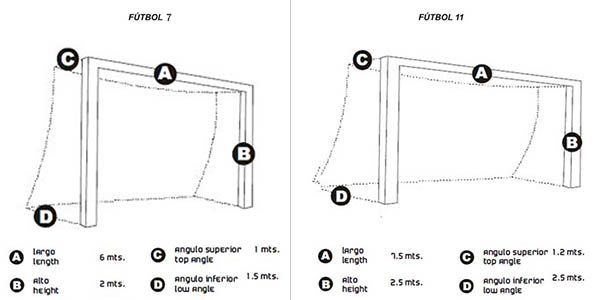 Generalmente, todas las porterías de fútbol tienen las medidas homologadas, es por ello que cualquier red para porterías de fútbol 11 debería adaptarse perfectamente a los marcos de fútbol 11 para detener correctamente el balón, lo mismo ocurre con fútbol 8. En el dibujo de abajo podrás ver las medidas oficiales de las porterías tanto de fútbol 11 como de fútbol 8.