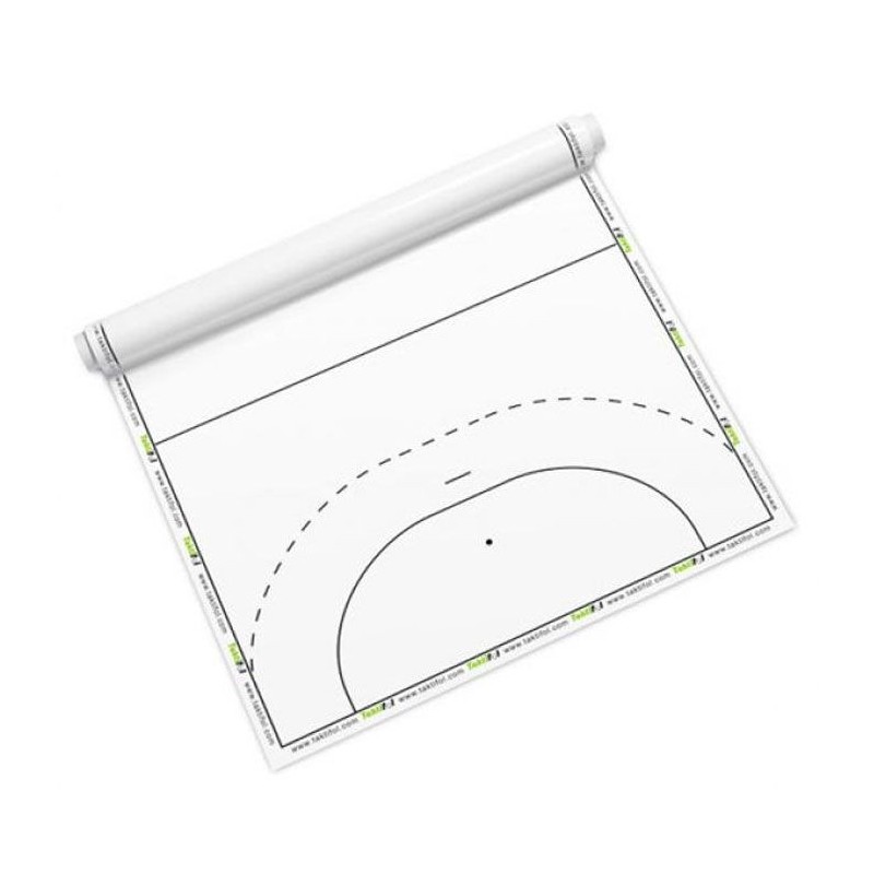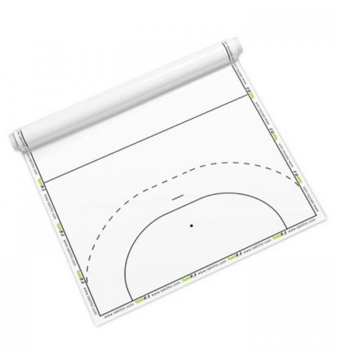 Rollo con 25 láminas Taktifol con carga electrostática que se adhieren en múltiples superficies y se despegan sin dejar rastro. Se puede escribir y borrar fácilmente con rotuladores tipo Velleda. Campo fútbol sala/balonmano.
