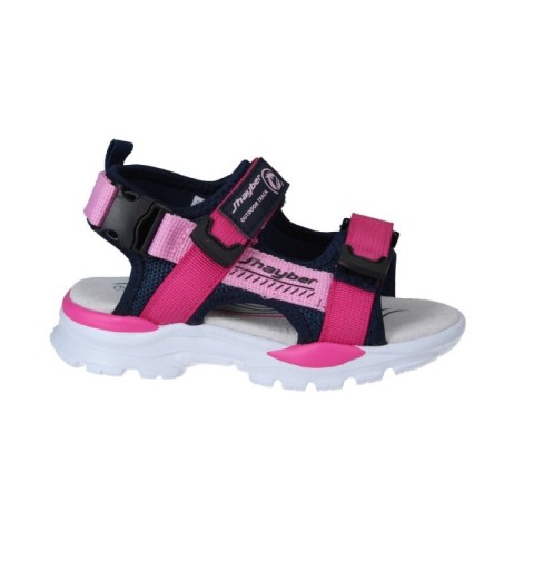 Las sandalias J'hayber Oipel de niña diseñadas en color azul marino y rosa y fabricadas con un tejido sintético y una suela de EVA que permitirán a las niñas disfrutar del verano con total comodidad y seguridad. Además, cuentan con un cierre a presión en el talón y un ajuste adherente en el empeine que hace que el zapato pueda ajustarse al pie a la perfección.