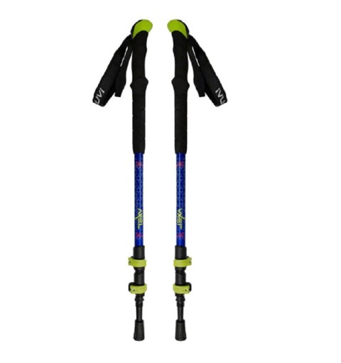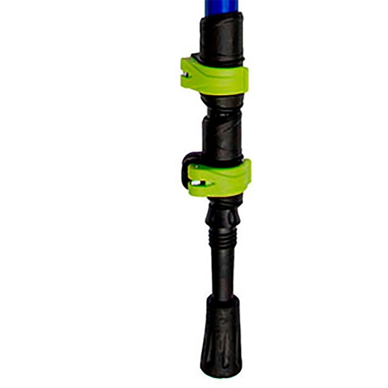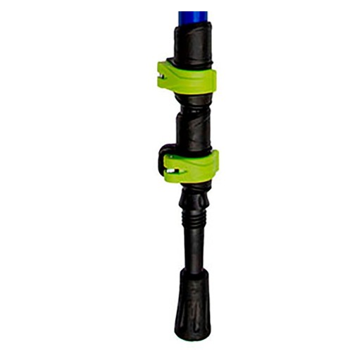 Los bastones de trekking de Joluvi están diseñados en duraluminio extra para una mayor resistencia a los impactos y desniveles del suelo. La empuñadura es de plástico (softplast) ergonómico con ranuras que permiten un mejor agarre y una buena ventilación. El sistema telescópico con tres medidas se ajusta según la altura de la persona que lo vaya a utilizar, para ello tendrá que utilizar el sistema klamp. Con un sistema de muelle incorporado para que no vibre durante la marcha. Y la punta de los bastones de punta de vidia. Juego de 2 bastones. Incorpora rosetas para nieve y tierra, así como la punta protectora de goma.