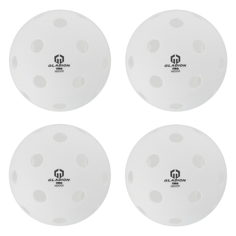 Set de 4 pelotas de pickleball Gladion Tirq para interior, en color blanco o amarillo, con diseño ligero y estable. Perfectas para sesiones de entrenamiento en clubes, colegios o centros deportivos.