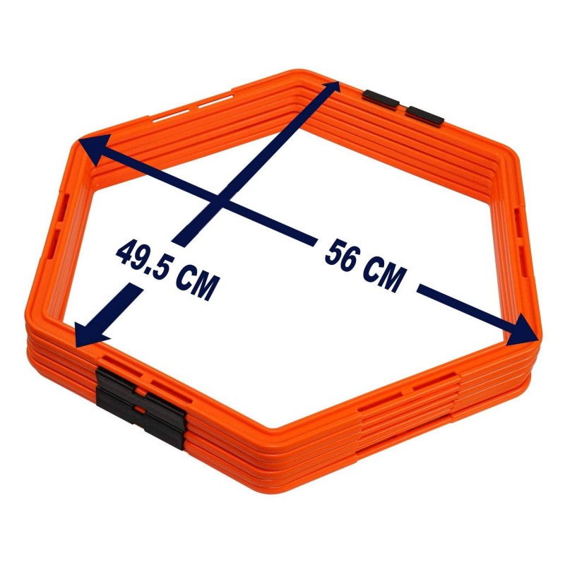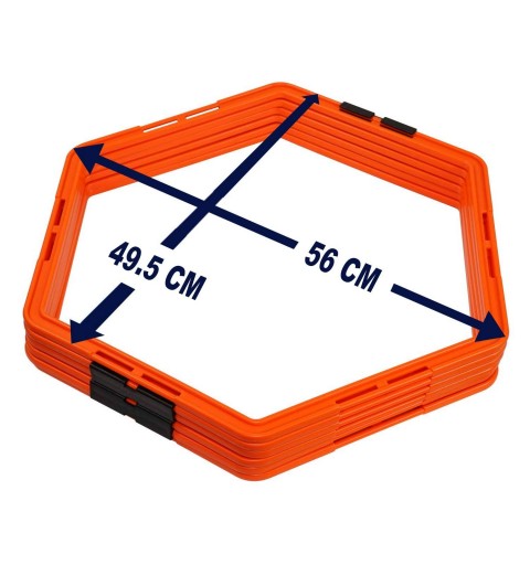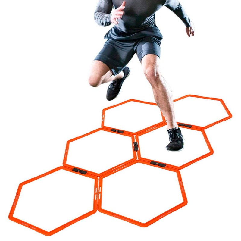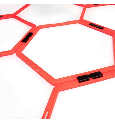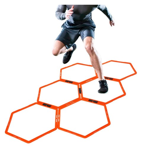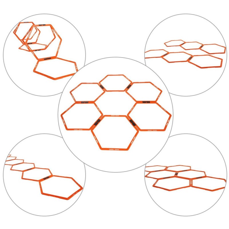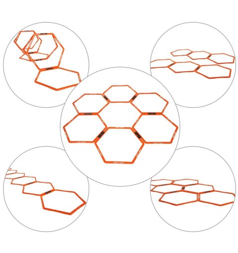 Equipo extremadamente versatil para mejorar la agilidad, coordinación, equilibrio y velocidad. Set compuesto de 6 celdas hexagonales combinables en diferentes configuraciones mediante conectores (incluidos). Incluye bolsa de tela para el almacenamiento.