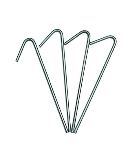 Piquetas de acero diseñadas para asegurar en el suelo las redes de las porterías y las cintas delimitadoras de fútbol, balonmano o voleibol playa. Set de 4 unidades.