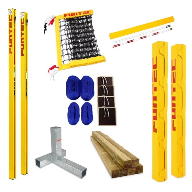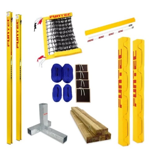 Descubre la versatilidad de nuestro conjunto de vóley playa de Funtec, diseñado para brindarte la mejor experiencia sin complicaciones. Con este sistema, disfrutar del vóley playa es fácil y conveniente, sin necesidad de instalaciones permanentes. Nuestro diseño innovador se centra en la comodidad y la durabilidad, con enchufes de suelo que se anclan de manera segura en la arena utilizando vigas de madera, garantizando estabilidad a lo largo del tiempo.
