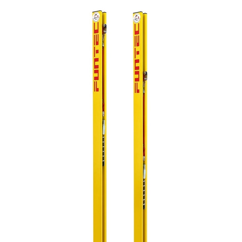 • 1 par de postes de red Beach Champ, fabricados en aluminio con un perfil resistente de 91x91mm y recubrimiento en polvo amarillo para una durabilidad excepcional, con certificación DVV1.