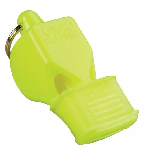 El silbato Fox 40 Classic CGM diseñado en color amarillo neón con una boquilla protectora para árbitros exigentes.