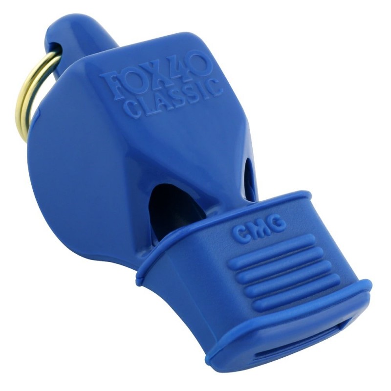 El silbato Fox 40 Classic CMG diseñado en color azul con una boquilla protectora ideal para árbitros exigentes.