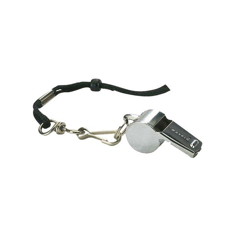 El silbato metálico es un modelo estándar, fabricado en latón con un baño de cromo, sonido potente y vigoroso. Es un silbato económico, con alta resistencia. Incluye cordón de nylon con bola corredera.