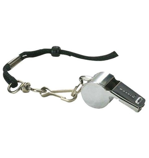 Silbato metálico con cordón para que el árbitro o entrenador puedan arbitrar en partidos o competiciones. Buena relación calidad/precio.