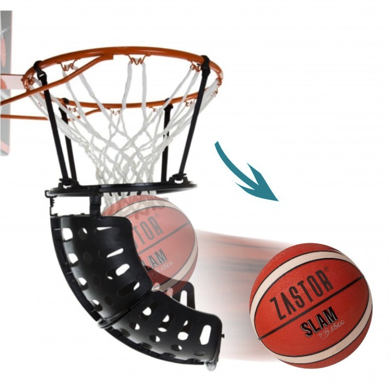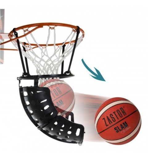 Sistema retorno de Zastor para entrenamiento de baloncesto. Perfecto para practicar los lanzamientos y recibir el balón sin tener que ir a buscarlo. Apto para todo tipo de canastas con sistema reglamentario.