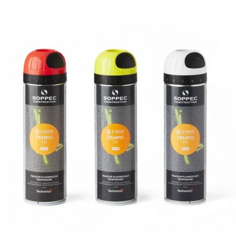 Explora nuestra pintura en aerosol de marcaje temporal, ideal para delimitar zonas, especialmente en entornos urbanos o sitios clasificados. Disponible en colores rojo, amarillo y blanco, con una duración máxima de 2 meses.