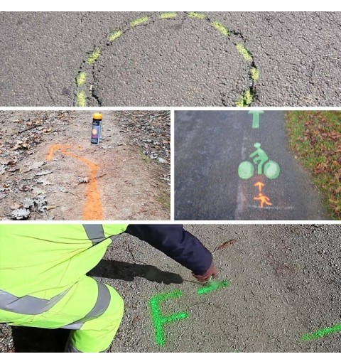 Simplifica la delimitación de espacios con nuestra pintura en spray temporal, con un máximo de dos meses de duración.