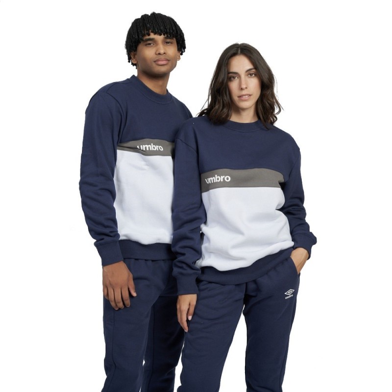 Con cintura, cuello y puños acanalados, esta sudadera en color azul marino de Umbro, la Sportswear Sweat, ha sido diseñada y fabricada con un corte normal, con tres colores en contraste para que la práctica deportiva sea más estética.