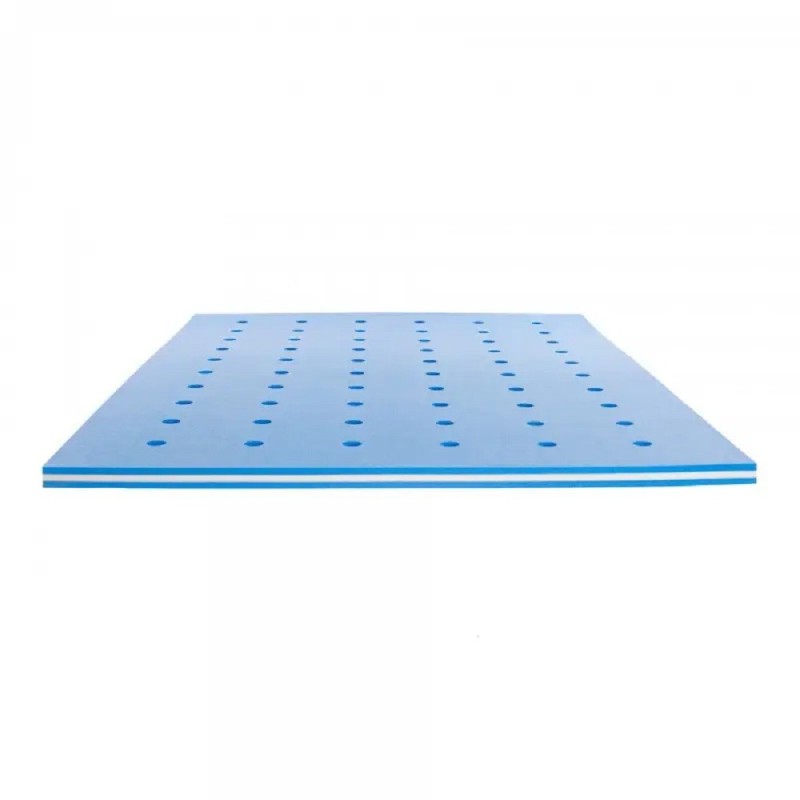 Este tapiz mide 150x100cm, fabricado con espuma de celda cerrada, lo que le da una mayor resistencia y durabilidad. La función de los agujeros que contiene a lo largo del tapiz, no son más que elementos para que estos sean fáciles de sumergir.