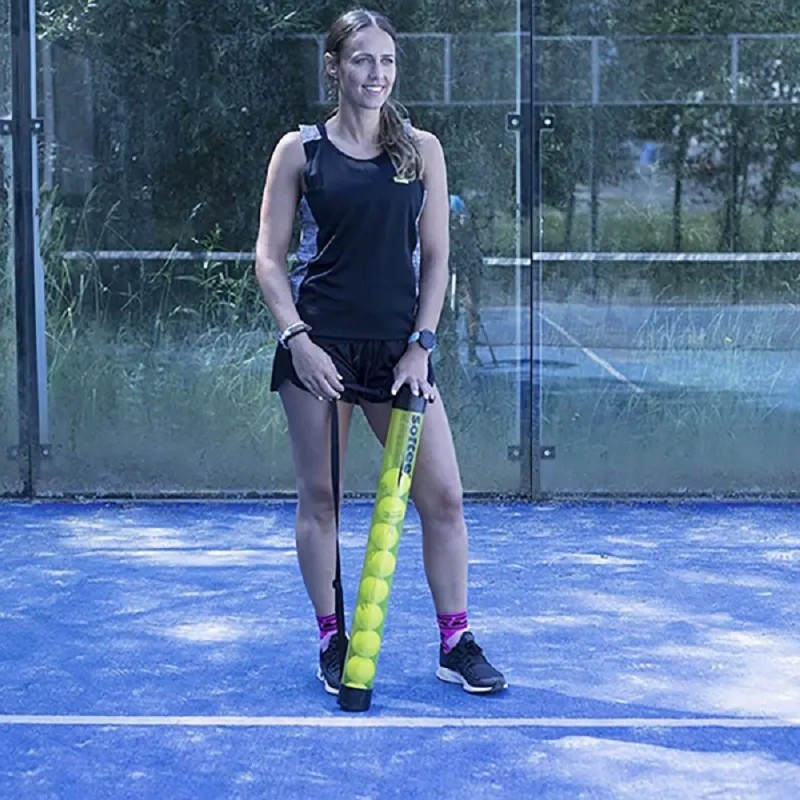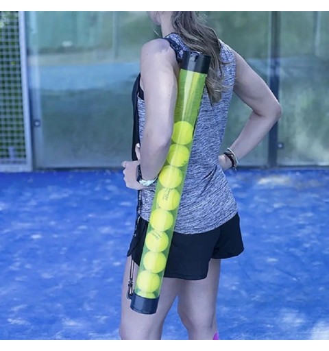 Recoge tus pelotas de tenis o pádel con comodidad y sin necesidad de agacharte tras cada partido o entrenamiento. Este tubo está fabricado con materiales de alta calidad y tiene una capacidad de hasta 15 pelotas, asegurando que todas tus pelotas estén guardadas de forma segura en un solo recipiente, evitando así que se pierdan. Además, cuenta con dos anclajes en uno de los extremos, que junto con una goma, evita que las pelotas se salgan, y un gancho en el otro extremo para que lo puedas colocar en la valla y tener las pelotas al alcance en todo momento. La cómoda asa de transporte hace que llevar las pelotas de manera fácil.